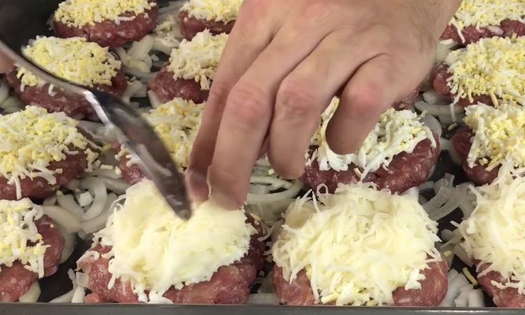 Фарш на подушці з цибулі запікається під сиром в духовці і на весь рецепт йде не більше 40 хвилин роботи. На одному деко виходить і гарнір, і основна страва – про звичайні котлети згадувати більше немає сенсу.
