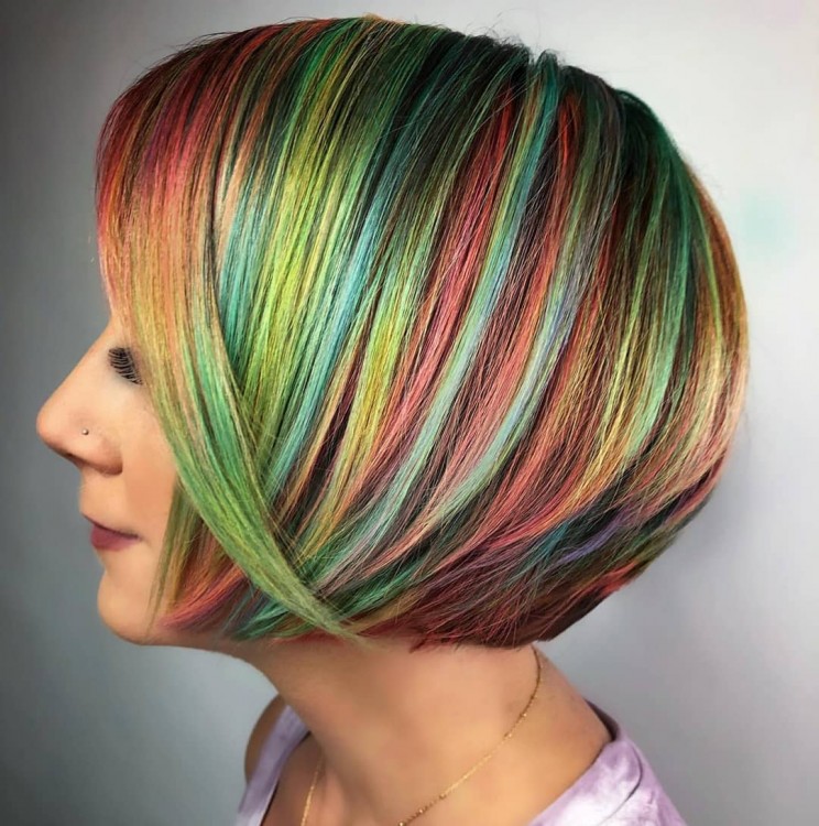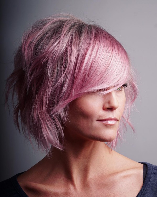 Косий чубчик ідеально доповнює образ жінки після 30 років. Градуйоване каре дозволить зробити об’ємну форму зачіски, а косий чубчик покращить образ у кілька разів. Підходить косий чубок володаркам овального, трикутного та квадратного обличчя.