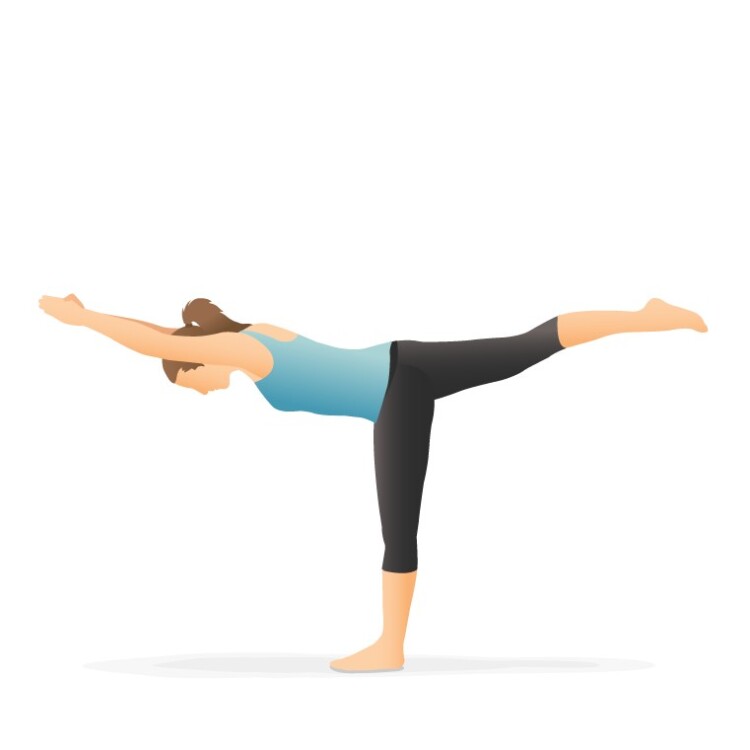 - вказівні пальці направити вгору, одночасно нахилившись і піднявши ліву ногу, щоб вона перебувала на рівні корпусу;