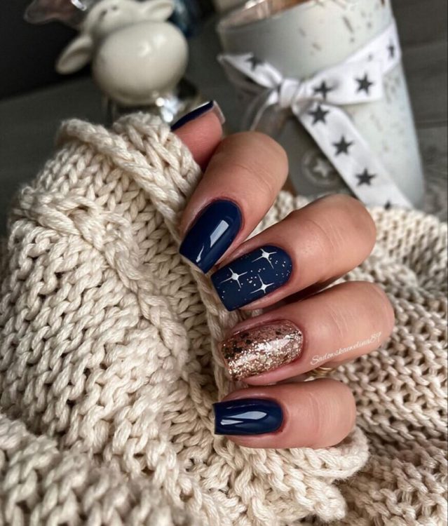 Сині відтінки чудово гармонують з будь-яким блиском, тому синій колір часто зустрічається у новорічному дизайні нігтів. 2024 ми вже зустріли, але багато свят ще попереду, тому у вас ще є час зробити святковий манікюр!
