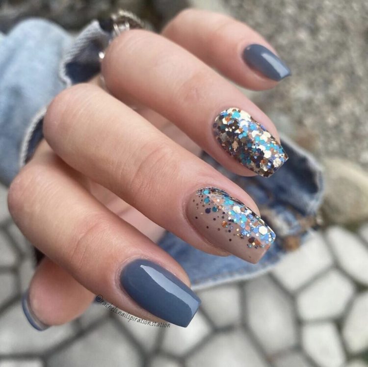 У нейл-індустрії сині відтінки популярні цілий рік, але саме взимку модниці вибирають їх трохи частіше, ніж зазвичай, комбінуючи з іншими типово зимовими відтінками: білим, сріблястим, сірим.