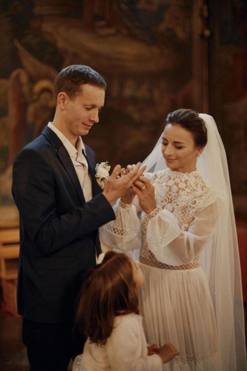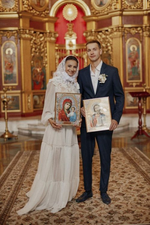 Зірка показала красиві кадри з вінчання, замилувавши всю мережу. Пара планувала здійснити вінчання ще 7 вересня, у день їхньої річниці. Однак, подружжя обрало іншу дату. Закохані обвінчались 9 вересня у Свято-Михайлівському Золотоверхому монастирі.