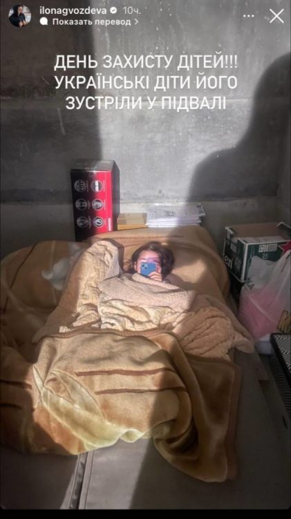 В Instagram-stories зірка українського шоу-бізнесу показала кадри, на яких позує з донькою у підвалі. В ньому Ілона Гвоздьова облаштувала місце, де на випадок повітряних тривог можна переночувати. 7-річна донька хореографині позувала на ліжку, тримаючи в руках телефон.