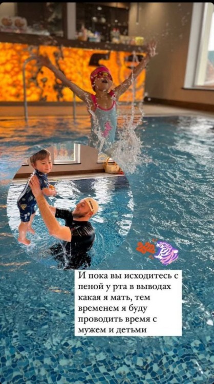 А ще хореографиня поділилась кадром, на якому проводить час зі своєю сім’єю. Жінка відправилась в басейн з рідними та показала коханого чоловіка з молодшим сином.