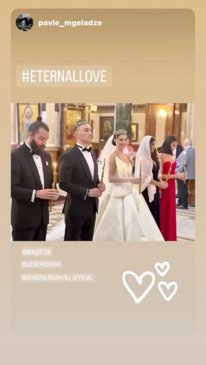 Весільні кадри закоханих розлетілись по всій мережі. На них шоумен позує зі своєю молодою дружино та щиро усміхається. Кохана Іраклі Макацарії постала перед камерою у пишній білосніжній сукні.