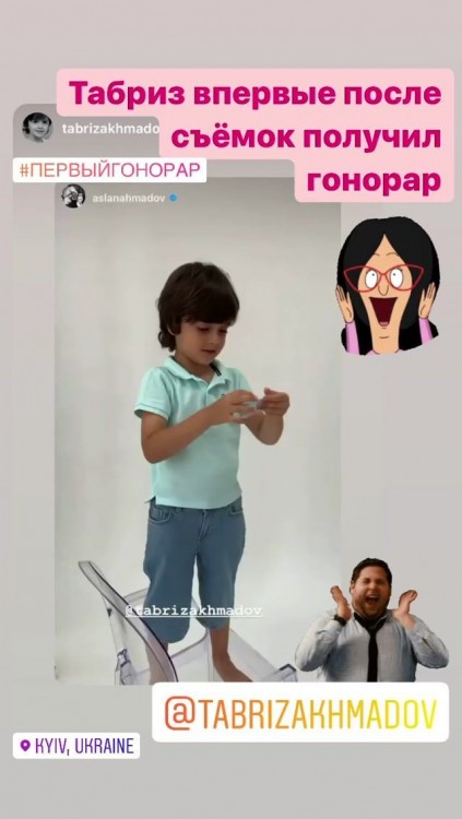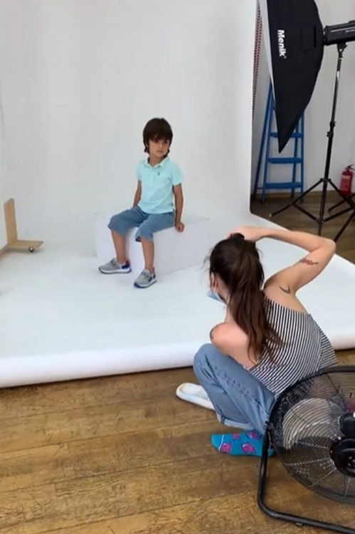 Артистка не може натішитись успіхами свого сина. Вона дуже ним пишається й вірить, що у хлопчика буде найкраще майбутнє. Перед камерою 5-річний Табріз постав у джинсових шортах й футболці блакитного кольору.