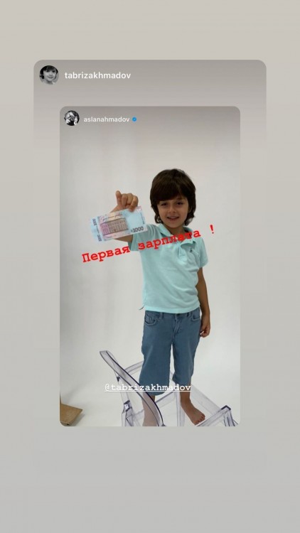 Виконавиця запостила світлини, на яких її син Табріз тримає в руках перші зароблені гроші. За словами Ірини Білик, хлопчик взяв участь у рекламній зйомці. За це йому заплатили 1000 гривень.