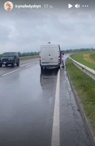 У концертному бусі крім Ірини Федишин перебували її чоловік, син та батько. Однак, на щастя, коханий артистки зазделегідь помітив проблему. Він викликав евакуатор, щоб забрати бус.