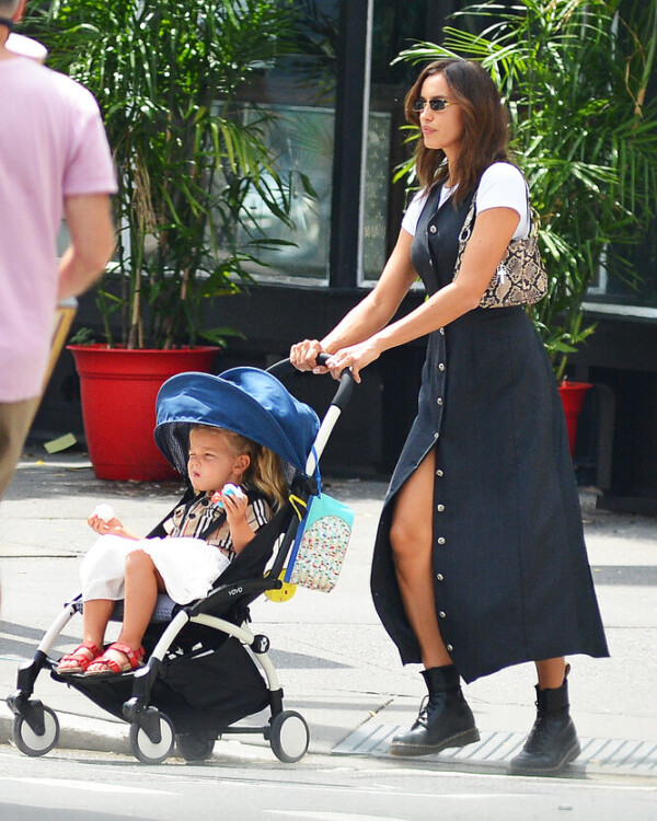 34-річна Ірина Шейк вирушила на прогулянку з донькою Лєєю де Сеною по Нью-Йорку. Відома модель приміряла яскравий образ в стилі 90-х років.