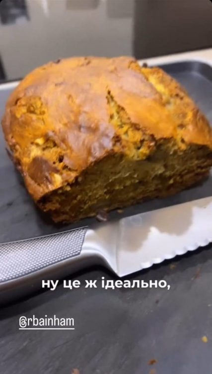 “Я прийшла додому дуже стомлена після знімань. Приходжу додому, а мій чарівний мужчина приготував банановий хліб. Це ж ідеально. Якби ви знали, як він пахне, це незаконно. Ти найкращий!”, – прокоментувала зірка українського шоу-бізнесу. Також акторка вкотре переконалась, наскільки їй пощастило з чоловіком.