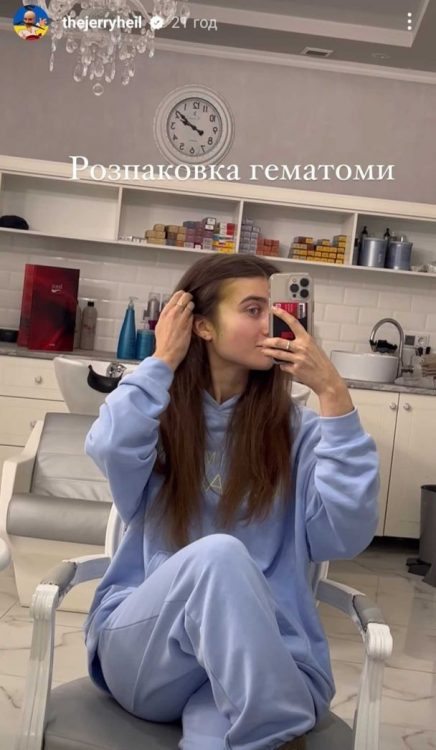 На скроні в співачки можна помітити чималу гематому жовтого кольору. Також виконавиця поділилась, як наразі почувається. За словами Jerry Heil, їй набагато краще. Зірка українського шоу-бізнесу багато часу відпочиває та відновлює свої сили.