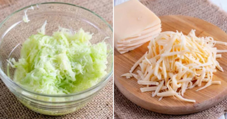 Молодий кабачок вимийте і натріть на дрібній тертці просто в миску. Натерту масу трохи посоліть, щоб вона пустила сік. Зайву вологу потім треба буде злити.