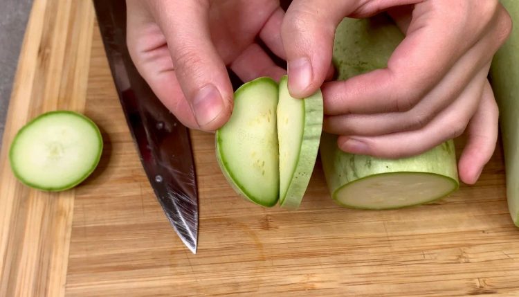 Кабачки нарізаємо кружальцями, завтовшки близько 1,5 см. і робимо кишеньки, як показано на фото.