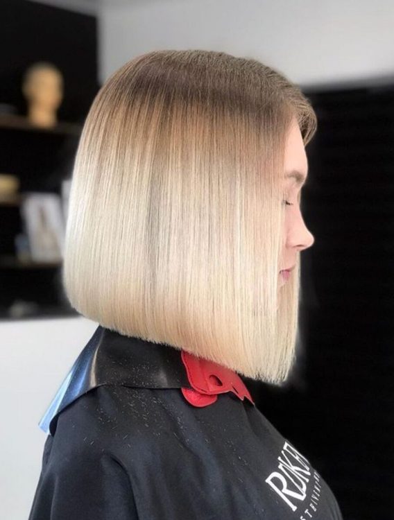 Відмінною рисою даної стрижки є строга геометрія ліній та чіткість зрізу кінчиків волосся.