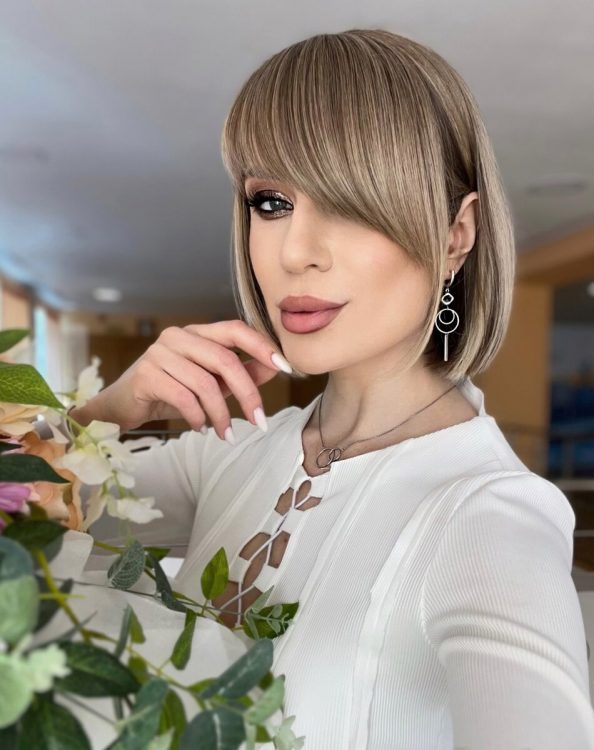 - До стрижки підходять різні типи чубчиків, починаючи від міні і закінчуючи подовженим/асиметричним.