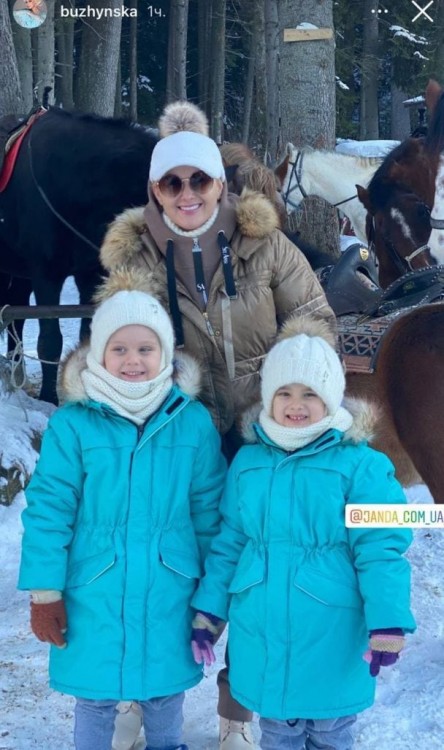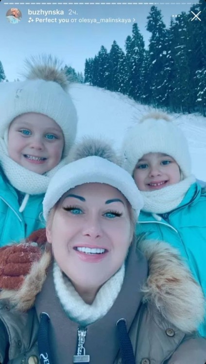 Поруч біля неї позували син та донька. Вони були одягнені в однакові блакитні куртки. Катерина Бужинська повідомила, що чудово провела час серед неймовірно красивих пейзажів.