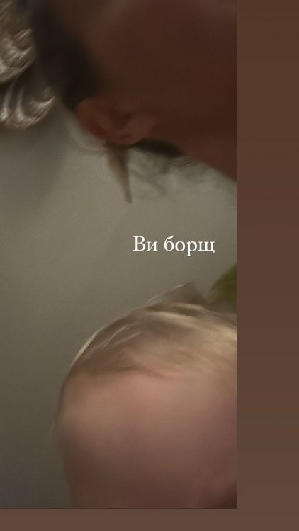 Поки телеведуча на хвилинку відволіклася, маленький Данило опановував телефон мами. Ба більше, 1,5-річний хлопчик навіть встигнув розмістити напис на кадрі “Ви борщ”.