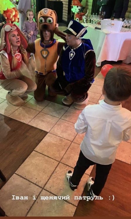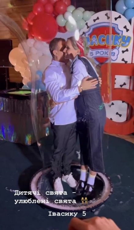 Закохані влаштували вечірку у стилі улюбленого мультика їхнього сина. Святкова зала ресторану була прикрашена великою кількістю повітряних кульок. Також на свято зіркові батьки запросили аніматорів, які показували шоу мильних бульбашок.