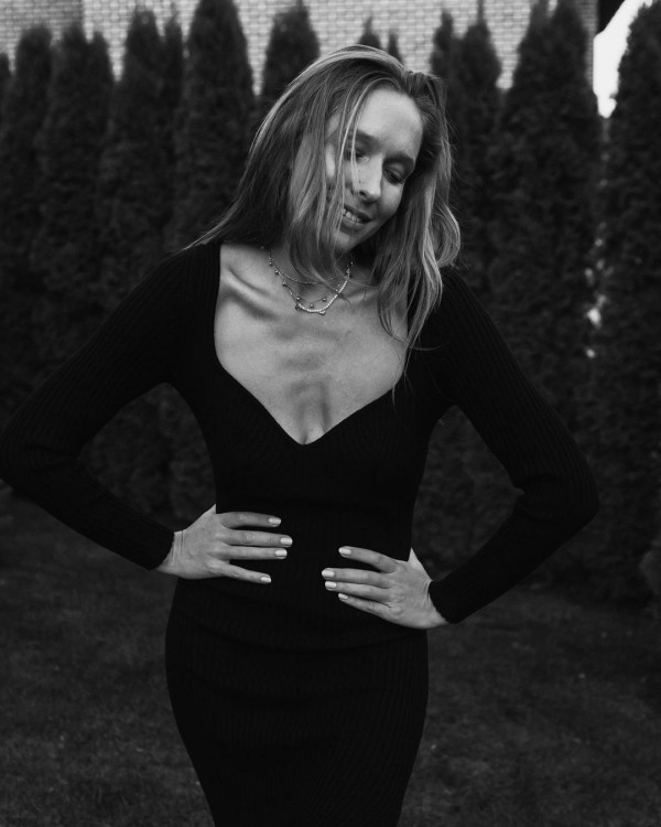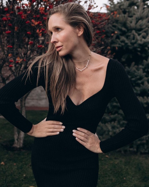 Цього разу телеведуча вразила чуттєвою фотосесією. На своїй сторінці в Instagram вона опублікувала дві світлини в чорно-білому та кольоровому варіанті. На них вона позує в ефектній чорній сукні з відвертим декольте. Приталений крій вигідно підкреслив усі вигини фігури Катерини, а волосся, яке вона залишила розпущеним, ніжно спадало на плечі жінки. Свій образ телеведуча доповнила ніжним намистом на шиї.