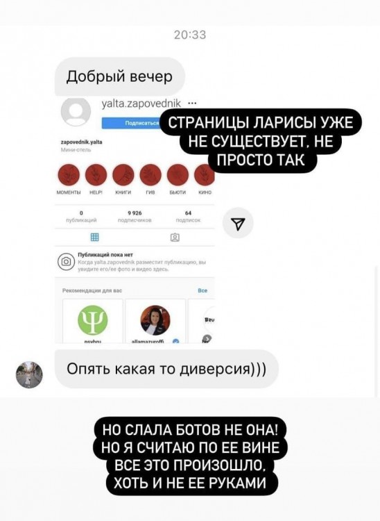 Всіх подробиць Катерина Реп’яхова не повідомила. Проте, в Instagram-stories жінка пообіцяла розповісти правду найближчим часом. А ще дружина артиста заявила, що саме Лариса Созаєва допомогла їй дізнатись, хто причетний до атакування рекламодавців ботами.