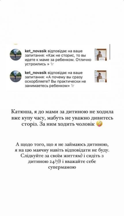 Закиди про те, що блогерка нібито не займається вихованням сина неабияк її розізлили. Також Катерина Реп’яхова заявила, що навіть у вільний час постійно працює.