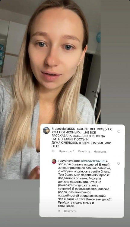 За словами жінки, після народження сина кількість її підписників зросла на 20 тисяч. Проте, Катерина Реп’яхова не розуміє, чому люди так негативно реагують на будь-які зміни.