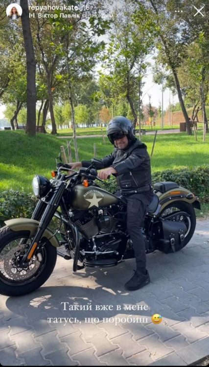 Також кохана Віктора Павліка поділилась кадром, на якому артист сидить на байку. “Такий вже в мене татусь, що поробиш”, – жартівливо підписала світлину Катерина Реп’яхова. Жінка вже давно звикла до критики та хейту. Вона не завжди звертає увагу на неприємні коментарі.