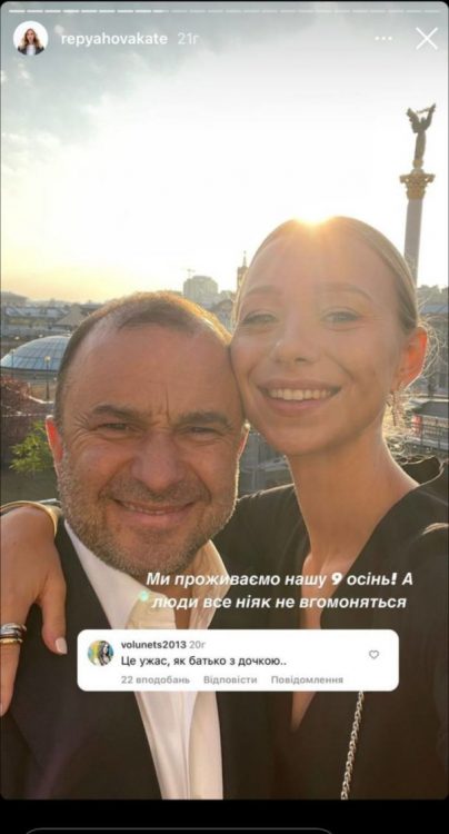 Нещодавно Катерину Реп’яхову знову розкритикували. Ба більше, зіркове подружжя порівняли з батьком й дочкою. Через деякий час блогерка відреагувала на критику. Вона з гумором відповіла на хейт щодо великої різниці у віці з Віктором Павліком. “Ми проживаємо нашу дев’яту осінь! А люди все ніяк не вгамуються”, – різко заявила Катерина Реп’яхова.
