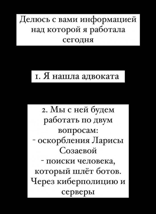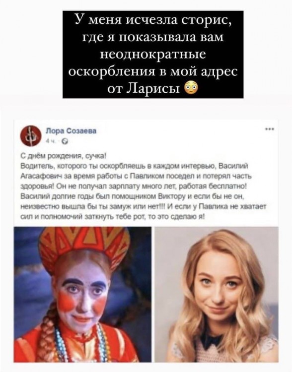 За словами жінки, вона має прямий матеріал переслідування та погроз від Катерини Реп’яхової. А ще в мережі показали звернення Лариси Созаєвої до дружини Віктора Павліка.