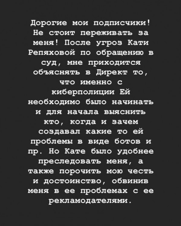 Також блогерка планує знайти та покарати тих, хто причетний до руйнування її бізнесу в Instagram. Лариса Созаєва відразу прокоментувала слова Реп’яхової.