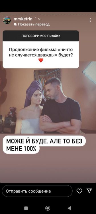 Також у артистки поцікавилися, чи буде продовження серіалу «Ніщо не відбувається двічі». Зірка заявила, що навіть якщо буде, то 100% без її участі.