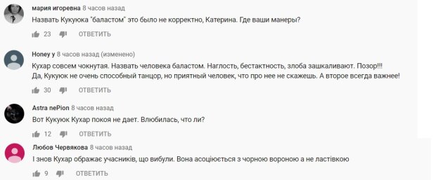 Користувачі були вкрай незадоволені виступом балерини, про що написали в коментарях. Деякі пишуть, що некоректно називати Кукуюка “баластом” і запитали в Катерини, де її манери.