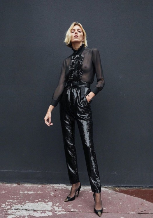 Ентоні Ваккарелла віртуозно працює зі спадщиною ввіреного йому Будинку моди Saint Laurent. У новій колекції дизайнер повертається до однієї з ключових речей бренду – смокінга, а приміряють його одні з найбільш популярних і відомих моделей сучасності – від Наомі Кемпбелл і Кейт Мосс до Ані Рубік та Мікі Арганараз.