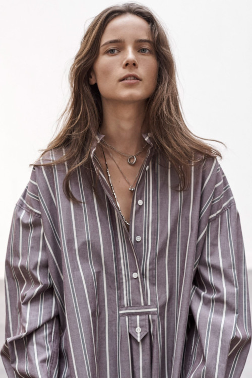 Вишивка, один з головних атрибутів Isabel Marant, прикрашає не тільки сукні колекції. Цей елемент богемного стилю є і на виробах з деніму: оверсайз сорочках з пишним рукавом, вільних штанах і куртках.