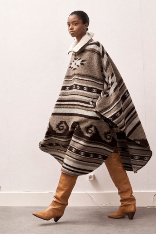 При першому погляді на колекцію осінь-зима 2020 згадується класичний образ ковбоя з 1960-х. Об’ємні пончо, кардигани з бахромою, в’язані светри з традиційним геометричним принтом і козаки на коркових підборах – і в голові вже звучить музика Енніо Морріконе, а перед очима постає задумлива постать Клінта Іствуда.