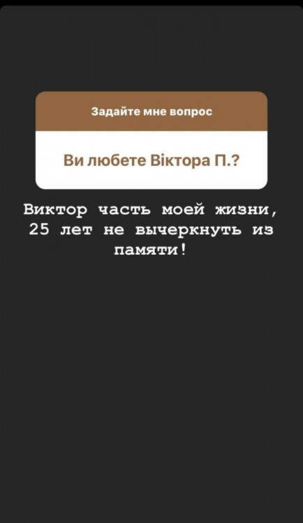Ексдружина Віктора Павліка вирішила відповісти на запитання фоловерів щодо її колишніх стосунків з артистом. В Instagram-stories жінка із задоволенням опублікувала відповіді на найчастіші запитання.