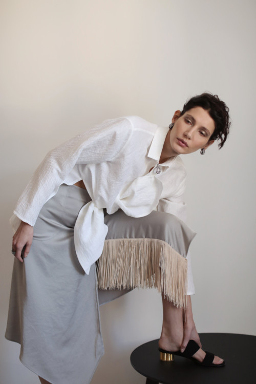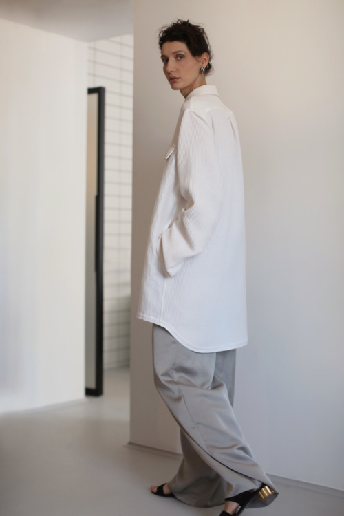 “Ми наслідуємо концепцію clean wearing, яка означає, що ми дотримуємося екологічності у самому підході до створення і носіння одягу. Вона підійде тим, кому важлива якість, а не кількість, хто оточує себе тільки необхідним”, – розповідає дизайнер марки Олена Пржонська.