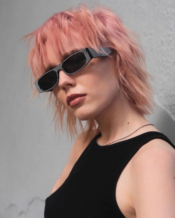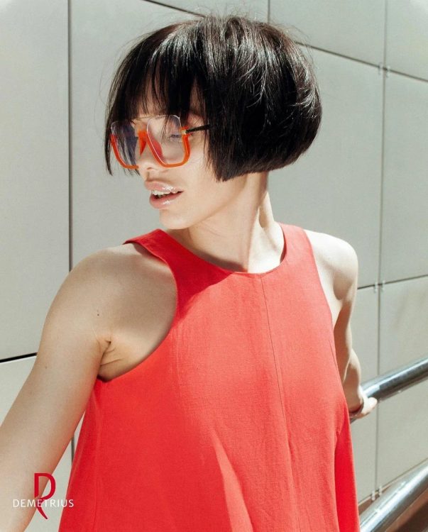 Молоді та яскраві модниці віддають перевагу об’ємному дуже короткому каре з прямим чубчиком. Цікаве поєднання гарантує, що образ повністю оновиться. Також стрижка зможе зробити обличчя більш пропорційним та витягнутим.