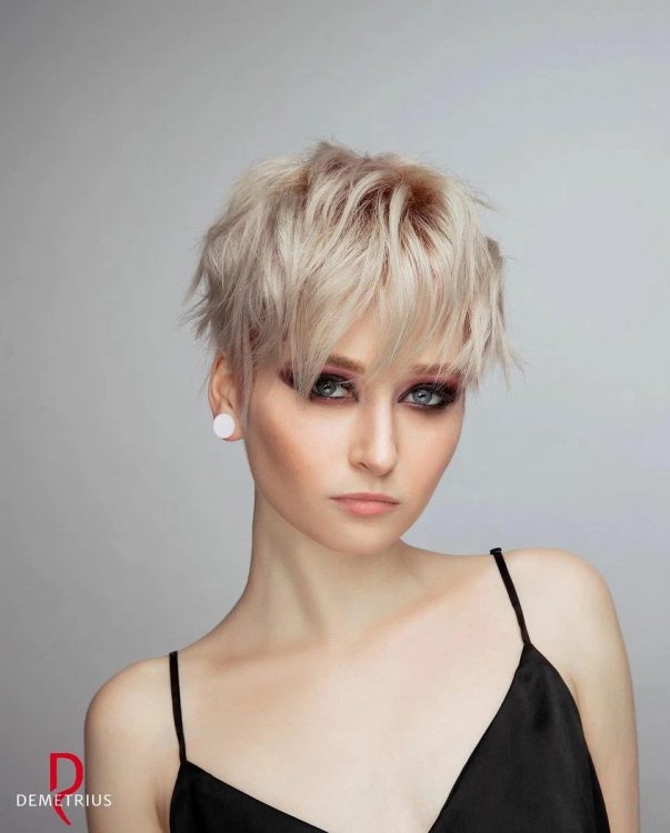 Якщо хочеться трохи підкоригувати овал обличчя і при цьому збільшити об’єм волосся, варто придивитися до стрижки піксі з помітною асиметрією. У таку зачіску варто додати нерівний чубчик, бажано рваний, щоб повністю завершити зухвалий та стильний імідж.