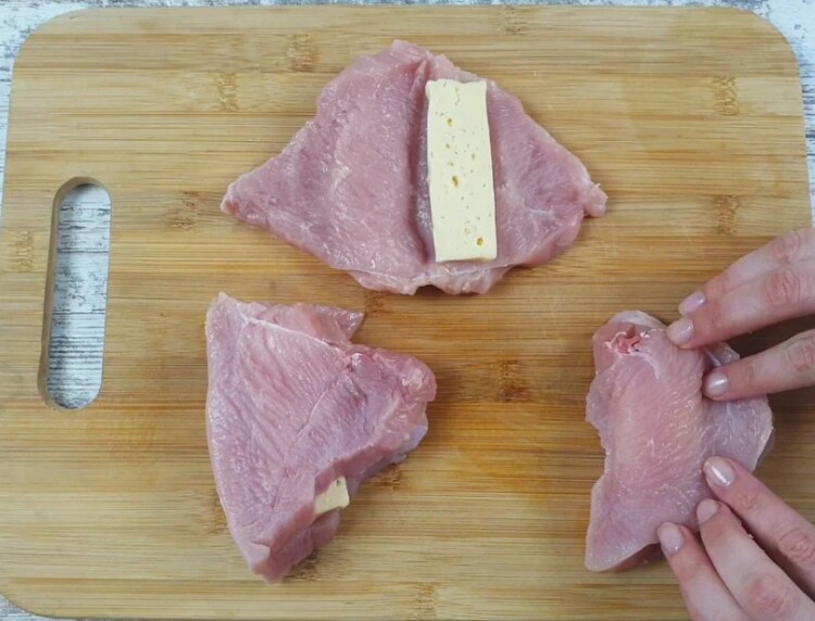 Відкриваємо філе, кладемо шматочок сиру, потім знову закриваємо.