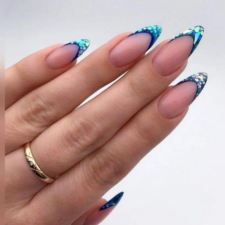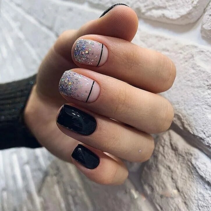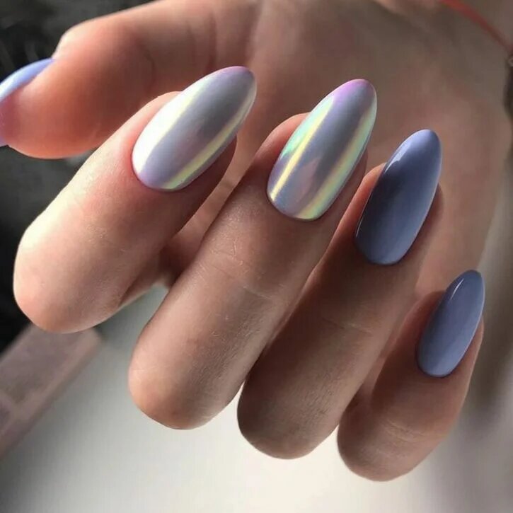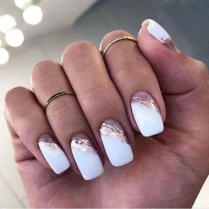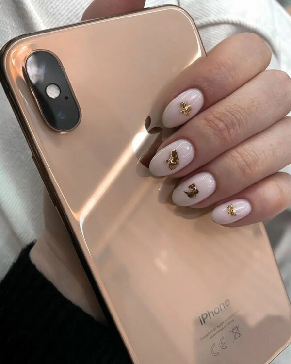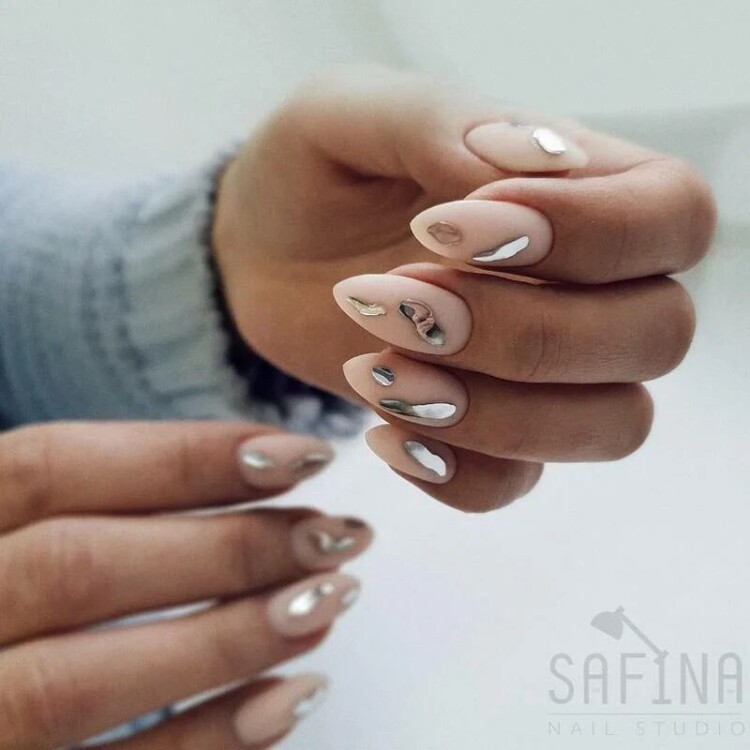 Манікюр зі шматочками фольги також привертає увагу. Можна використовувати золоту або срібну фольгу. Вона ідеально підійде для будь-якого покриття. Дуже добре виглядає кришталева крихта pixie. Вона надає образу індивідуальності. Достатньо додати її на пару нігтиків.
