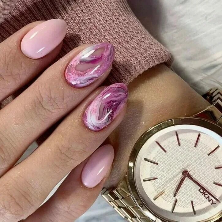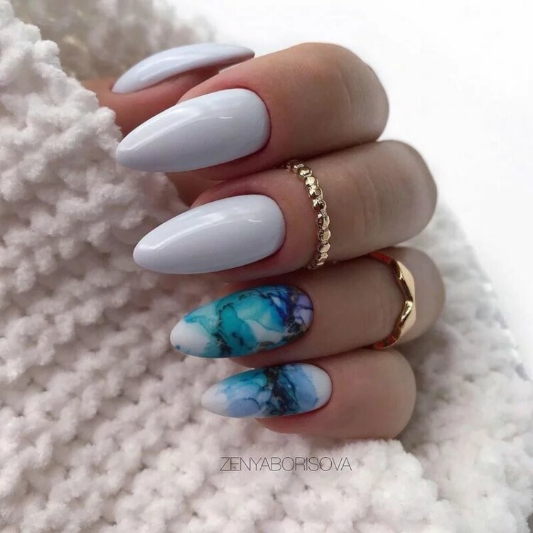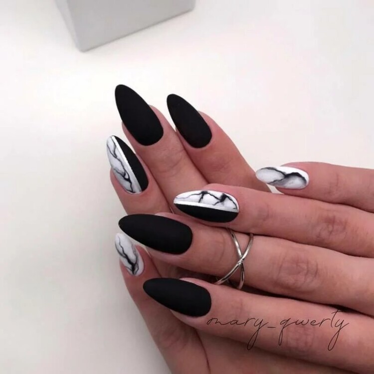 Також однією з новинок став манікюр із застосуванням цікавих і неординарних технік виконання. Можна розділити ніготь на дві вертикальні частини. Одну виконати в однотонному виконанні. На другій половині зробити “мармуровий” дизайн. Або ж застосувати анімалістичний принт. Виглядає стримано і незвично.