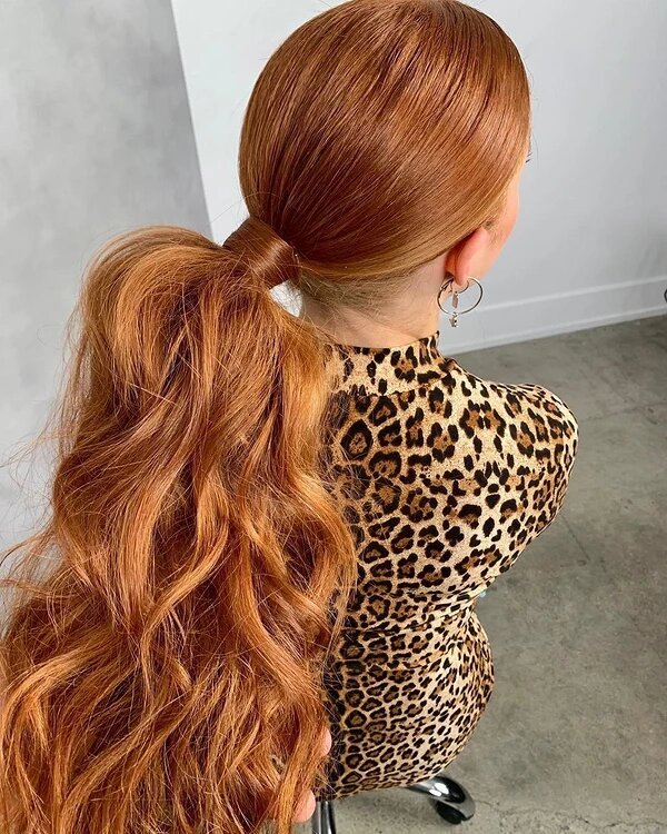 Якщо довжина волосся дозволяє, подумайте про низький хвіст з пригладженою – допоможе гель-блиск – верхньою частиною. Розкоші зачісці додасть прихована гумка: дістаньте пасмо з хвоста, оберніть його навколо гумки і закрепіть невидимкою. До речі,сам хвіст важливо зробити об’ємним і розпушити якомога більше, Тому що гра на контрастах (в цьому випадку і взагалі) – це наше все.