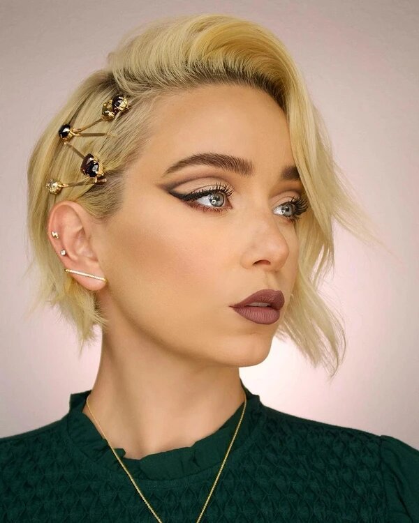 Думаєте, що з коротким волоссям нічого особливо святкового годі й чекати? І дуже даремно. Для ефектної зачіски вам знадобиться улюблений стайлінг, щоб надати локонам потрібної форми, кілька класних шпильок (Чим більше блиску і каменів, тим краще)і навіть не п’ять, а три хвилини вільного часу. Пробувати обов’язково!