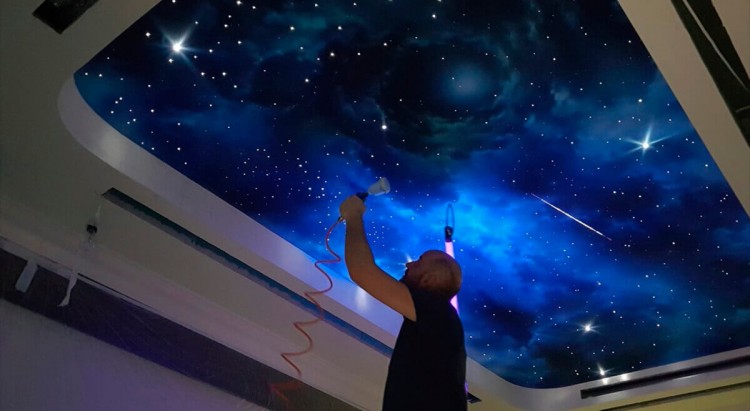 Не зря 3д-эффекты приобрели такую большую популярность, заняв почетное место не просто кратковременного модного тренда, а устоявшейся классики в оформлении интерьеров. Стереоскопические изображения на потолке построены на прицепе бинокулярного зрения человека, которое позволяет нам видеть мир объемным. Технология 3D дает возможности сделать окружающее пространство более реалистичным и живым, а плоскости потолка, стен, пола – объемными. Потолочные обои со стереоизображениями позволяют визуально расширить пространство, вытянуть стену, поднять потолок и т.д.