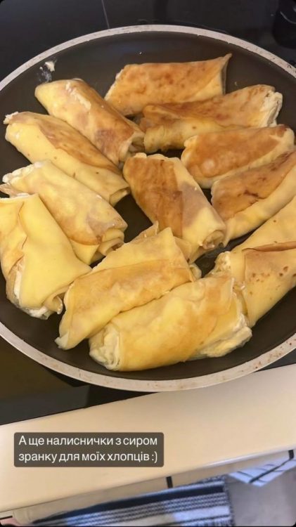 З ним акторка навіть ходила на побачення, після якого залишилась дуже задоволеною. Нещодавно зірка “Кріпосної” натякнула, що більше не самотня. В Instagram-stories вона запостила фото, показавши свій сніданок. “А ще налиснички з сиром зранку для моїх хлопців”, – прокоментувала акторка.