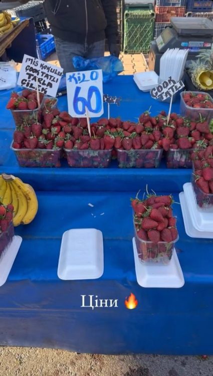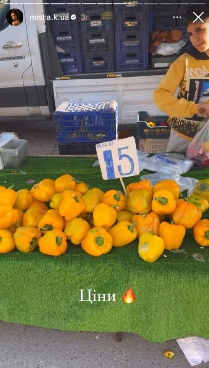 За словами Ксенії Мішиної, вона була приємно вражена. Як виявилось, на турецькому ринку овочі та фрукти набагато дешевші, ніж в Україні. “Перчик – 15 лір (18 грн за 1 кг), там практично один до одного. Кабачки – 10 лір (12 грн), помідори – 20 лір (24 грн), горох – 30 лір (36 грн), полуничка – 60 лір (72 грн)”, – повідомила акторка.