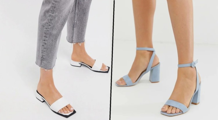 На квадратний носок в повсякденному образі можуть наважитися тільки найсміливіші модниці. Якщо ви не боїтеся виділятися, цей варіант – якраз для вас! В тренді будь-яке взуття з таким носком: туфлі, босоніжки, балетки, Мюлі… Особливо порадіють тренду дівчата, які мріють зробити ніжку мініатюрною: квадратний носок візуально укорочує стопу.