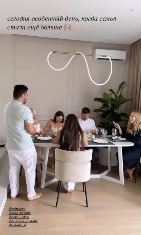 За словами Квіткової, святкування такої важливої події відбулось у їхньому будинку. Молоді батьки накрили розкішний стіл з великою кількістю смачних страв. В Instagram-stories Квіткова й Добринін запостили багато світлин з Таїнства Хрещення.