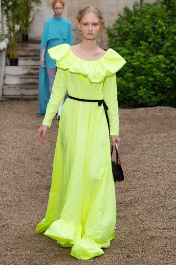Флуоресцентний кислотний зелений дуже складно вписати у повсякденний гардероб, тому що в будь-якому вигляді він буде перетягувати ковдру на себе. На Тижні моди сезону весна-літо 2020 дизайнерів це не зупинило і моделі виходили на подіуми в шовку та атласі саме цього відтінку. Головна порада, яку ми можемо вам дати, – в майбутньому теплому сезоні не намагайтеся якось втихомирити і заглушити цей колір – носіть пофарбовані в нього сукні.